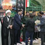 در بخشی از این مراسم پرچم مقدس گنبد حرم مطهر حضرت امام رضا(ع) در میان حاضران گردانده شد.