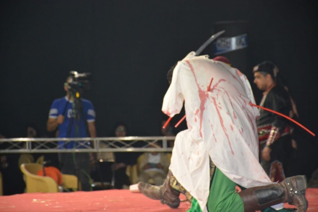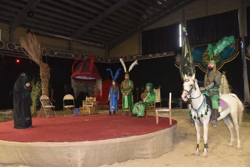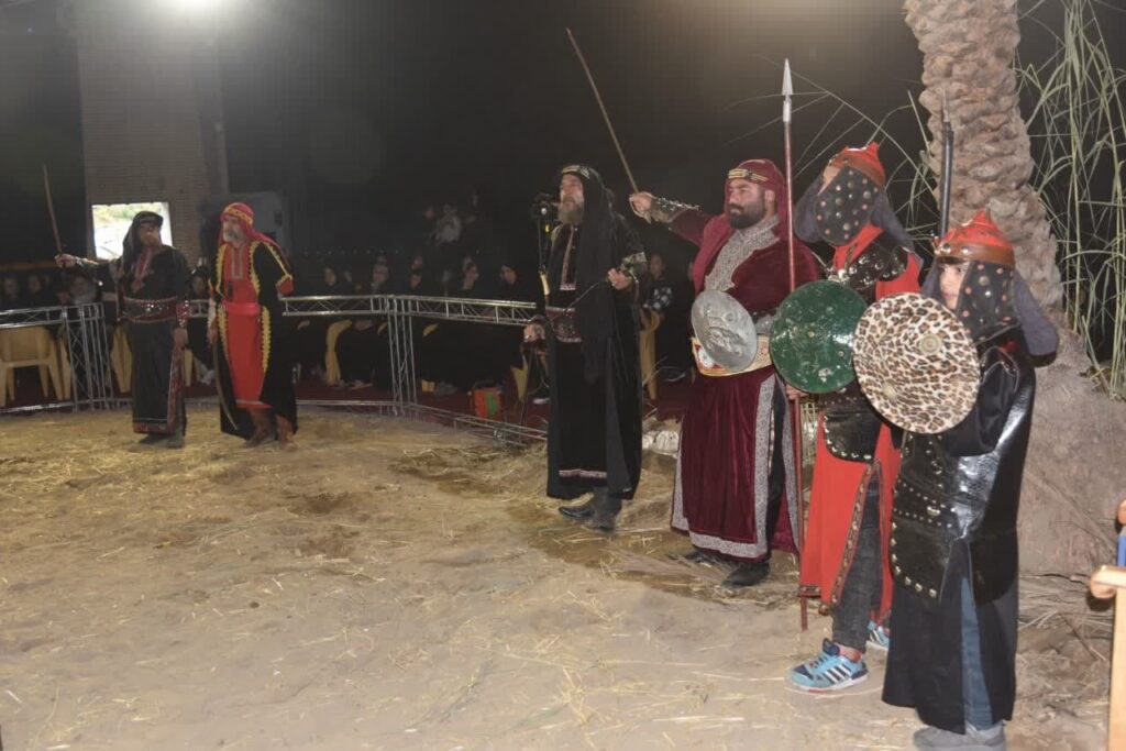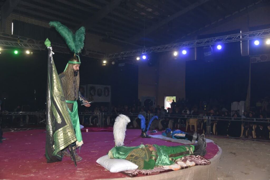 تعزیه شهادت حضرت عباس(ع) که با استقبال گسترده مردم شور و حلاوت خاصی پیدا کرده بود با هنرنمایی اساتید مطرح تعزیه کشور آقایان داود آبایی، محسن گیوه کش، حسن اسماعیل نژاد، مهدی صیادی، حسین عقیقی و… در کنار منتخبی از تعزیه خوانان گروههای شهر اجرا شد.