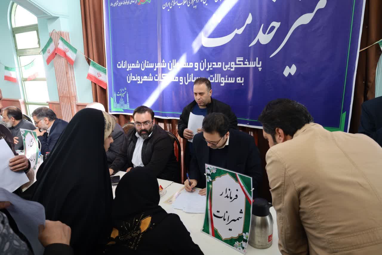 میز خدمت دهه فجر؛ پاسخگویی مستقیم فرماندار و مسئولان به شهروندان در مصلی نماز جمعه بخش لواسانات